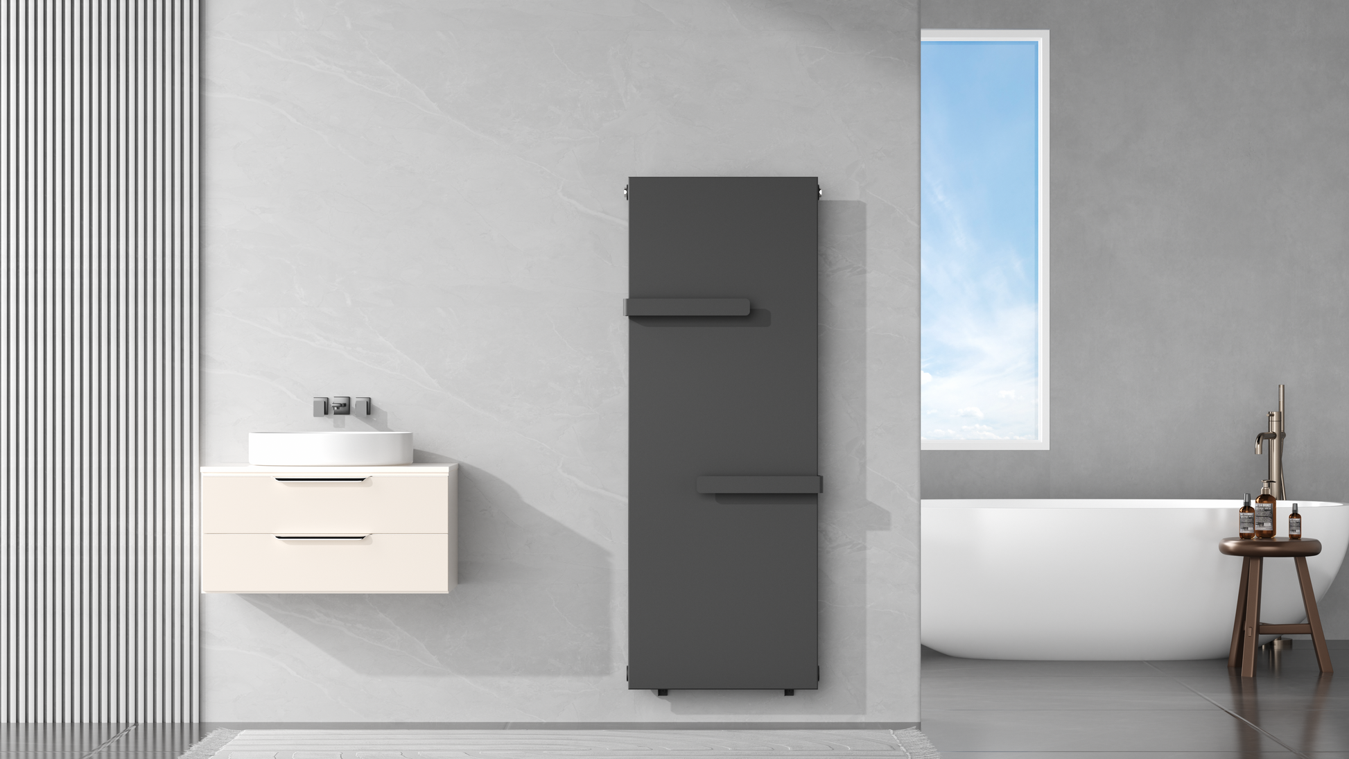 Finisajul negru mat adaugă profunzime, stil și un aer exclusivist, integrându-se perfect în băile minimaliste, industriale sau contemporane. Silueta sa înaltă și îngustă permite montajul chiar și în băi cu spațiu limitat, oferind în același timp o distribuție uniformă a căldurii.