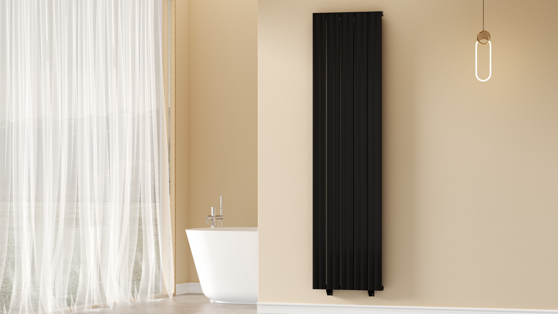 Eleganță și eficiență termică într-o singură piesă — caloriferul vertical decorativ THERA în finisaj negru mat devine instant un element statement în orice baie modernă. Designul său minimalist, definit de tuburi verticale perfect aliniate, transformă radiatorul dintr-o simplă sursă de căldură într-un obiect de decor sofisticat.