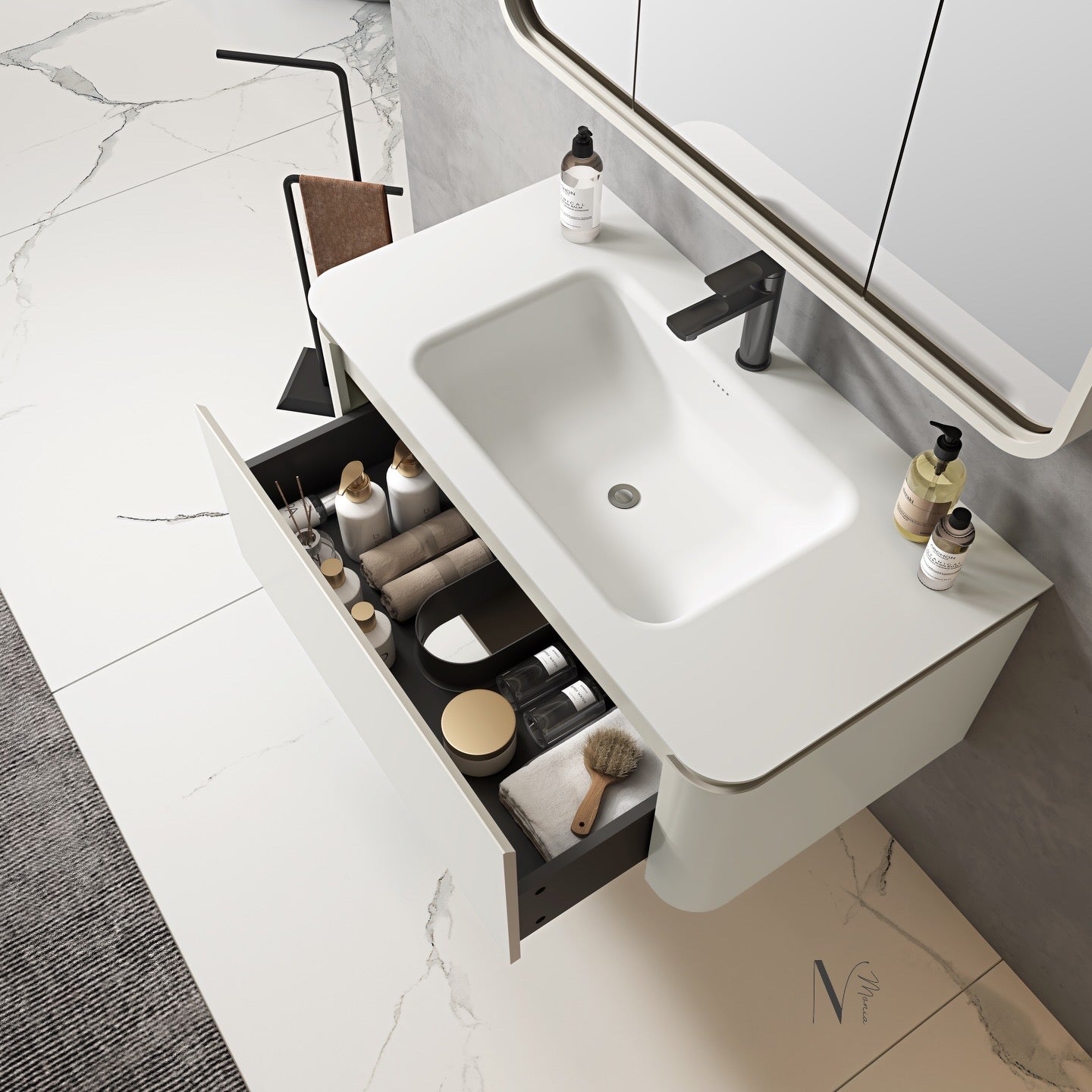 Mobilierul de baie ARDEA este expresia designului modern reinterpretat prin linii fluide și proporții atent studiate. Volumul suspendat, colțurile ușor rotunjite și suprafețele curate creează o estetică aerisită, calmă și sofisticată.